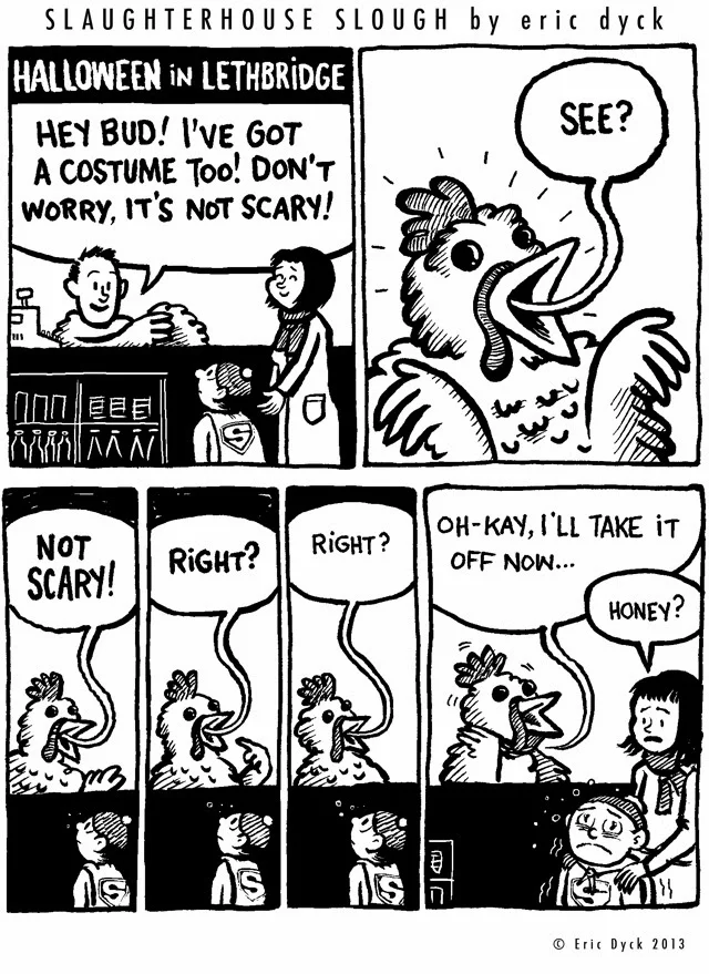 SLAUGHTERHOUSE SLOUGH #194: NIGHTMARE CHICKEN First Prev Archives Random Share Next Today First Prev Archives Random Share Next Today This week's Slaughterhouse Slough says "Hello!" to all the great folks who came out to the Lethbridge Comic Con! Posted on November 05, 2013 Tags Slaughterhouse Slough
