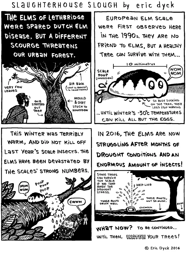We begin our look at the European Elm Scale crisis in Lethbridge. Thousands of trees in our urban forest impacted by the combined effects of a drought and an out of control insect population, thanks to a disastrously warm winter.